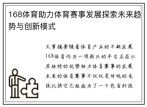 文章摘要:随着体育产业的不断发展,168体育作为一项新兴的平台,正在以其独特的优势助力体育赛事的发展。未来的体育赛事不仅仅是传统的竞技比拼,它已经成为了一个包含科技、数据、互动和多元化体验的综合性平台。本文将从四个方面详细探讨168体育在推动体育赛事发展中所扮演的关键角色及其未来趋势与创新模式。首先,本文将分析数字化转型如何为体育赛事带来变革;其次,探讨如何通过大数据和人工智能提升赛事的观众体验和管理效率;然后,讨论168体育如何利用跨界合作与创新模式促进体育赛事的商业化发展;最后,分析168体育平台如何借助社交媒体和虚拟技术吸引年轻观众。本文将总结168体育的模式对体育赛事的深远影响及其未来的潜力和挑战。